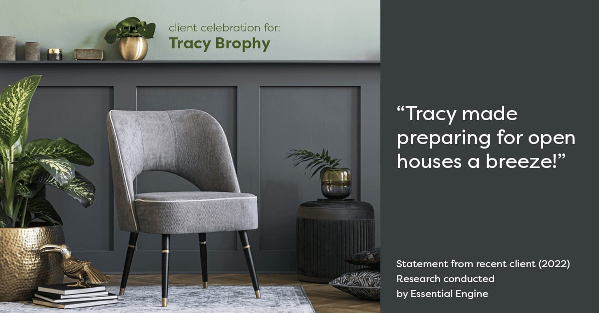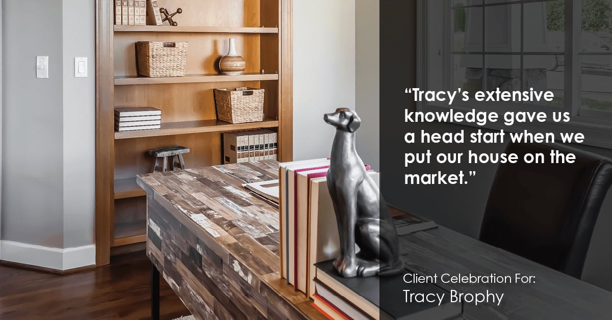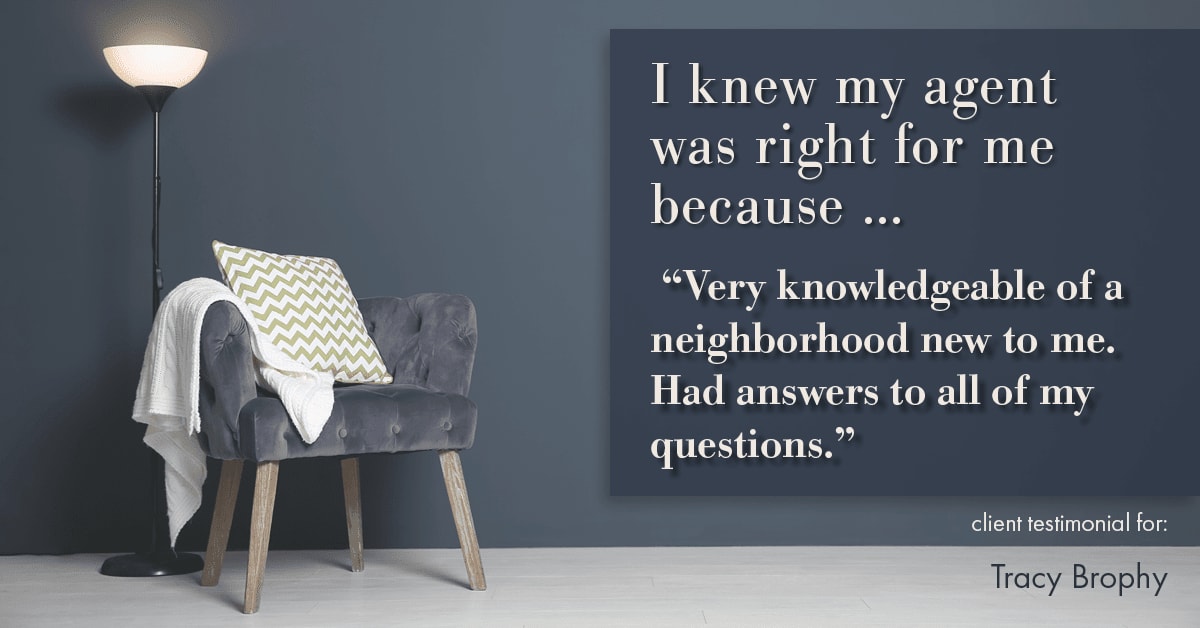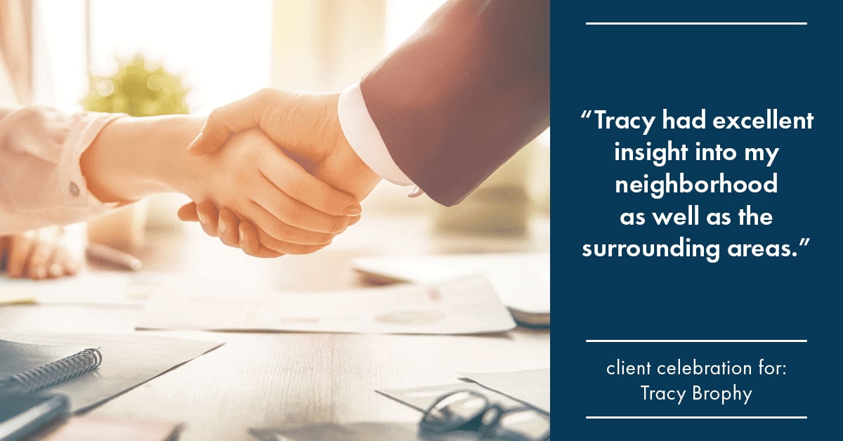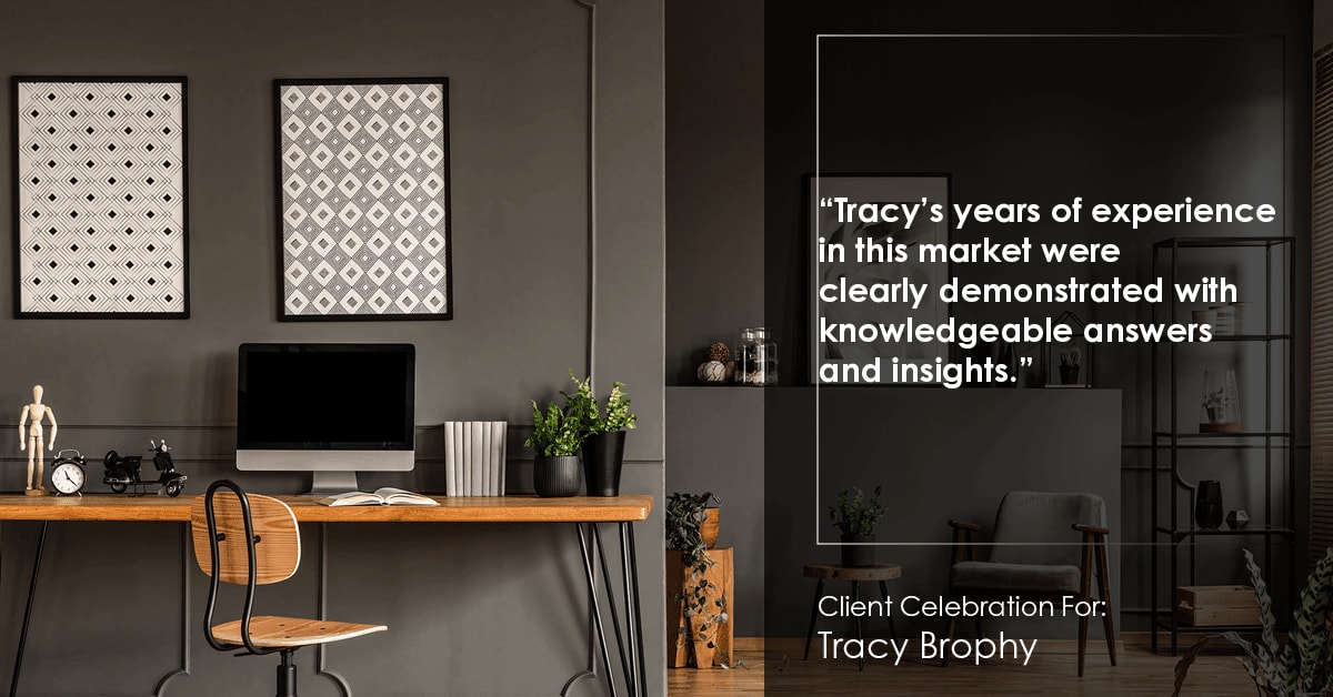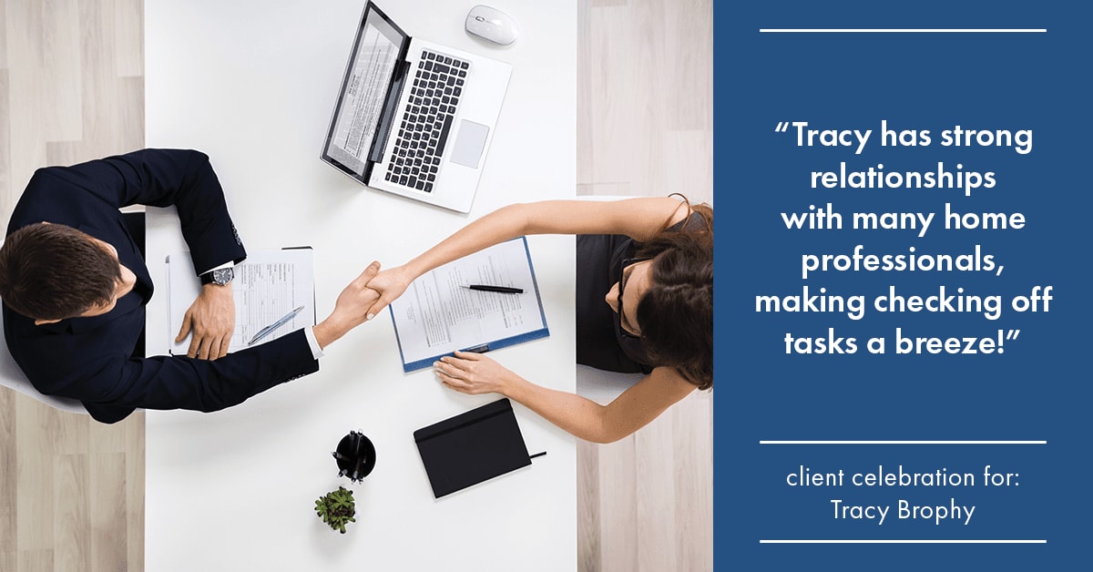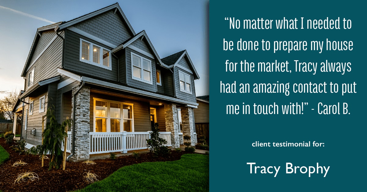 I was referred to Tracy by a co-worker and it was absolutely the best recommendation I've ever gotten. Both my husband and I have worked with multiple real estate agents and Tracy has them all beat without any doubt. Tracy was available to us whenever we needed her. She made it easy for us to look at houses by being available in the evenings and on weekends. This doesn't seem like too much of a stretch for a real estate agent, but we were toting around a toddler when we were looking so it wasn't always easy when we needed to schedule around nap times and not to mention getting him in and out of the car at each house. This didn't faze her one bit, and did I mention my son loves her. Along with putting up with us looking at probably 30+ houses all the way from Milwaukie to Beaverton, she managed to sell our house in record time for what we felt was a very fair price and more than I actually expected to get in this market. If you need a real estate agent and want someone who is fun, knowledgeable, and flexible Tracy is your agent hands down. She knows about the entire Portland metro market and didn't hesitate to tell us what she thought of the properties we were looking at, good or bad, which we truly appreciated. We ended up buying a bank-owned home and Tracy was the perfect agent to have in this situation because she was well-informed of what documents were needed for this type of transaction. She kept us informed and stayed in constant communication with the selling agent so we always knew where we stood. It took us 4 months to find our perfect home, but the wait was worth it. She found us a house we love in a neighborhood that we adore. We don't plan on moving soon, but if and when we do the first person I call will be Tracy Brophy.