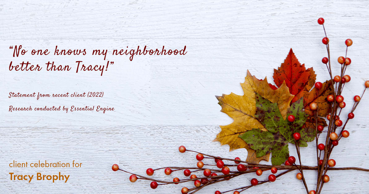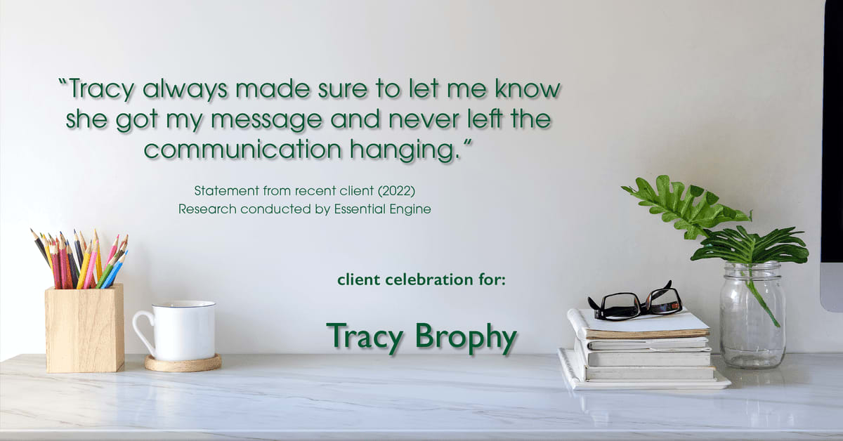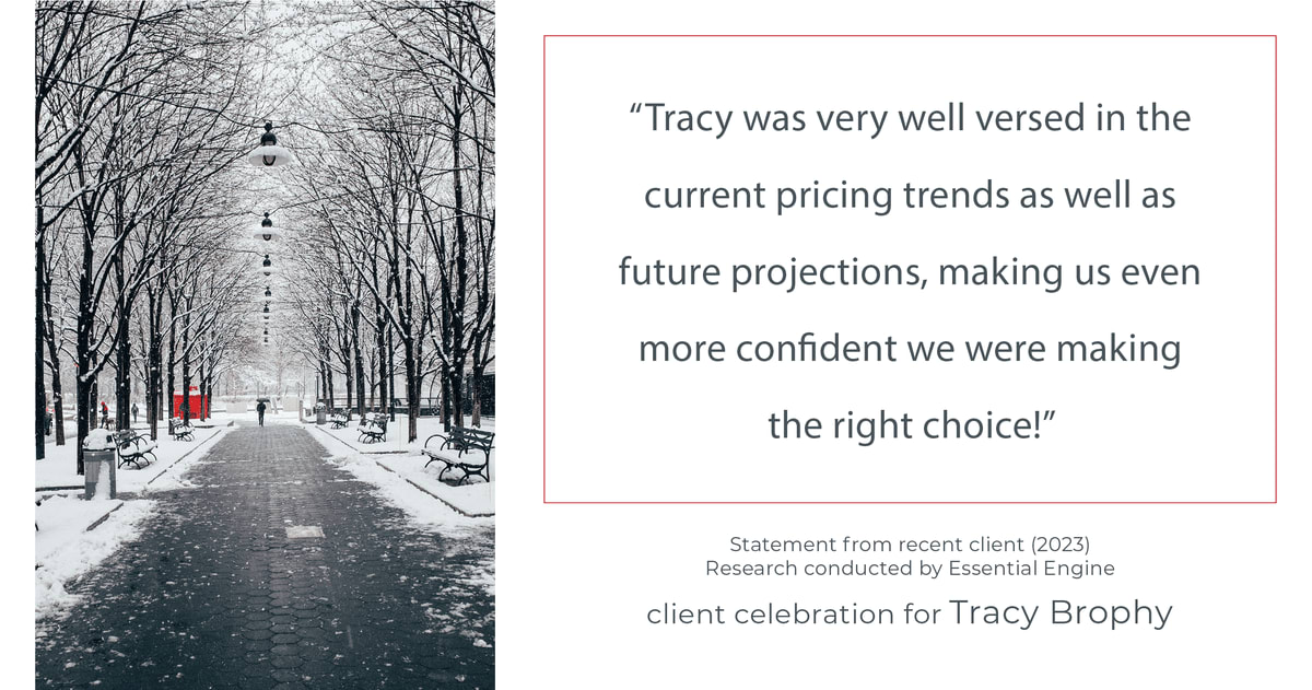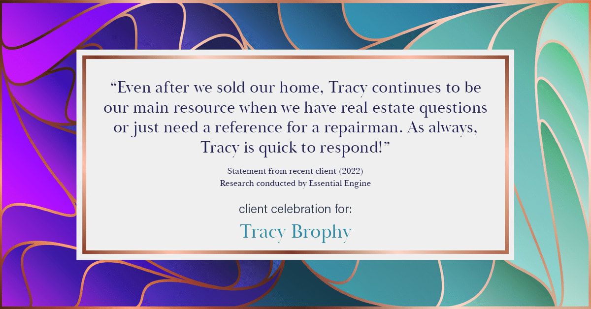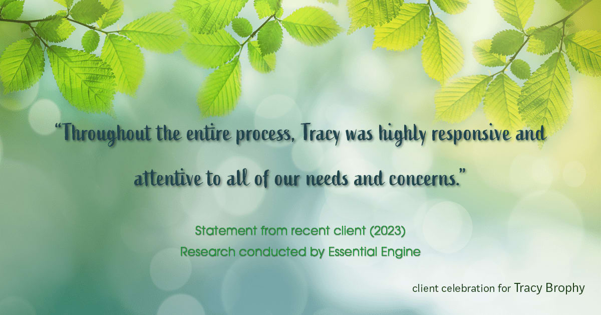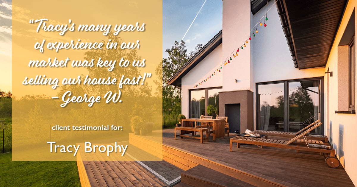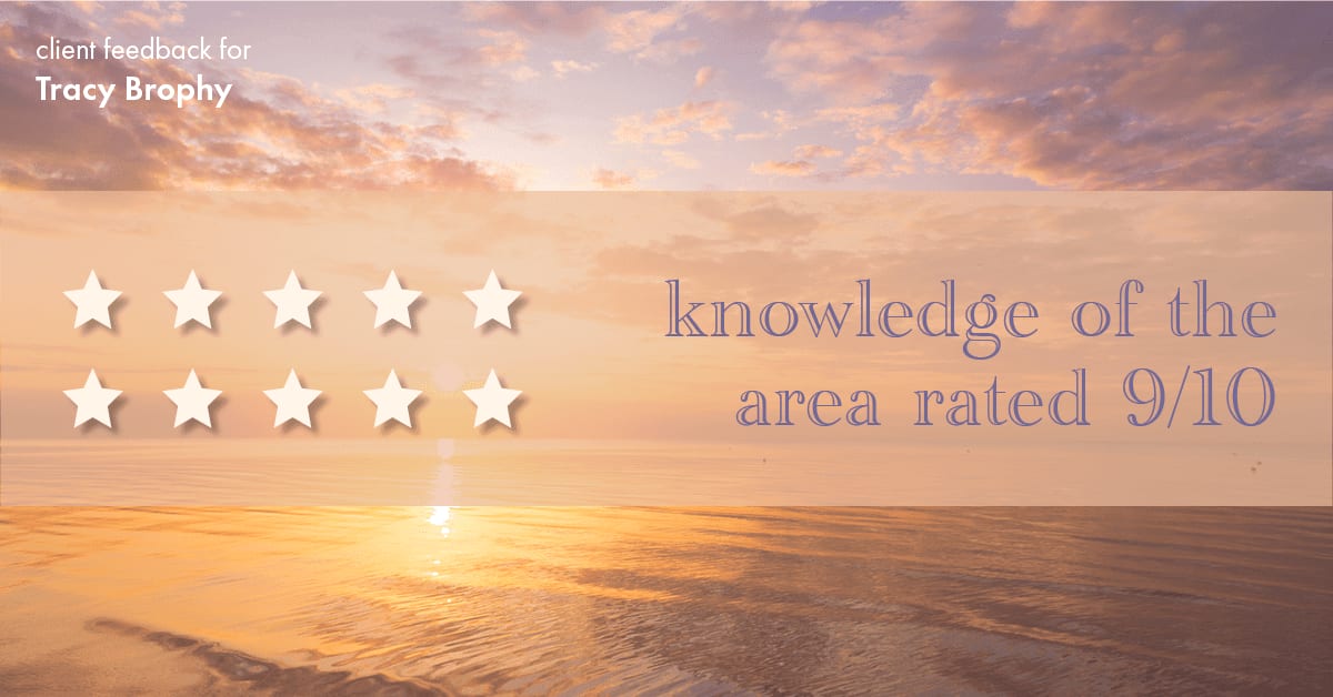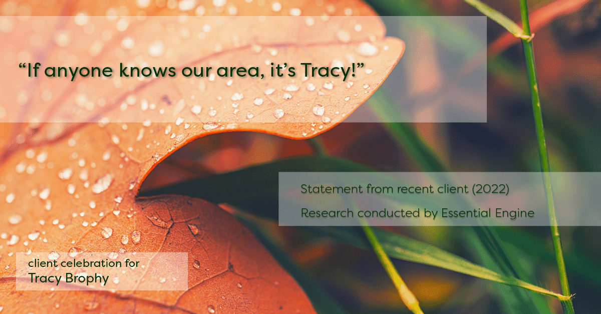 I was referred to Tracy by a co-worker and it was absolutely the best recommendation I've ever gotten. Both my husband and I have worked with multiple real estate agents and Tracy has them all beat without any doubt. Tracy was available to us whenever we needed her. She made it easy for us to look at houses by being available in the evenings and on weekends. This doesn't seem like too much of a stretch for a real estate agent, but we were toting around a toddler when we were looking so it wasn't always easy when we needed to schedule around nap times and not to mention getting him in and out of the car at each house. This didn't faze her one bit, and did I mention my son loves her. Along with putting up with us looking at probably 30+ houses all the way from Milwaukie to Beaverton, she managed to sell our house in record time for what we felt was a very fair price and more than I actually expected to get in this market. If you need a real estate agent and want someone who is fun, knowledgeable, and flexible Tracy is your agent hands down. She knows about the entire Portland metro market and didn't hesitate to tell us what she thought of the properties we were looking at, good or bad, which we truly appreciated. We ended up buying a bank-owned home and Tracy was the perfect agent to have in this situation because she was well-informed of what documents were needed for this type of transaction. She kept us informed and stayed in constant communication with the selling agent so we always knew where we stood. It took us 4 months to find our perfect home, but the wait was worth it. She found us a house we love in a neighborhood that we adore. We don't plan on moving soon, but if and when we do the first person I call will be Tracy Brophy.