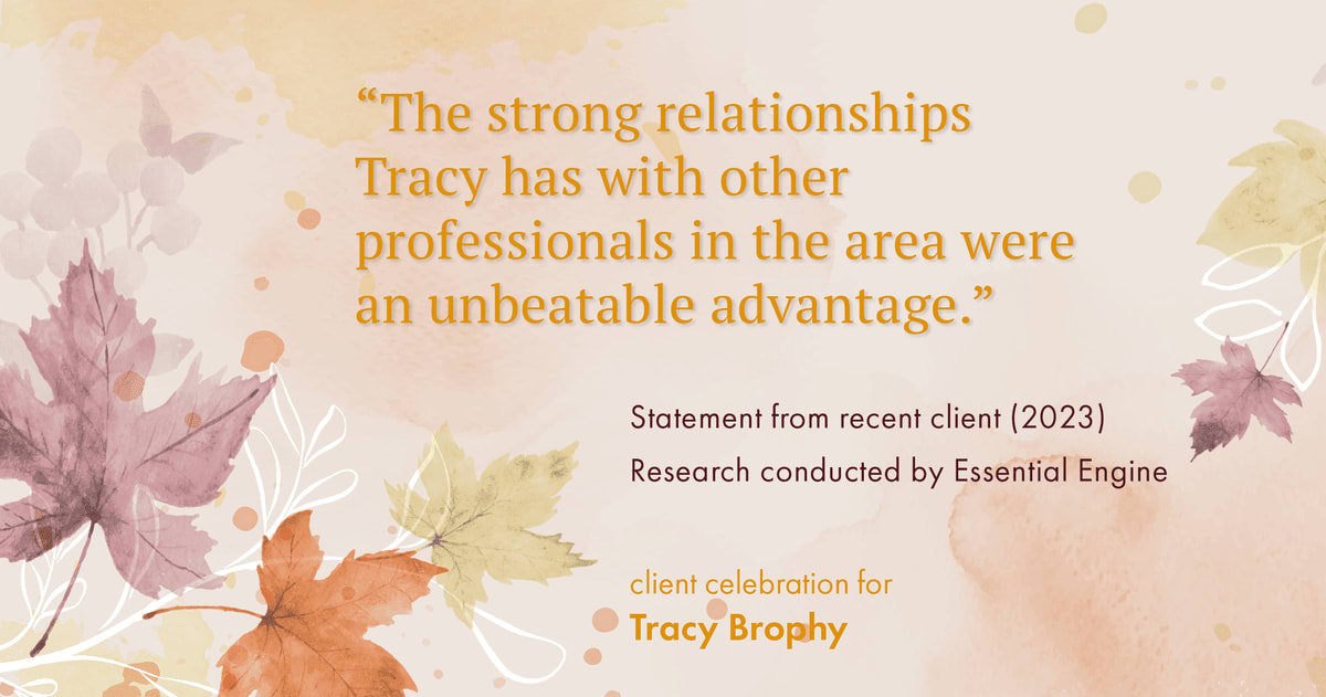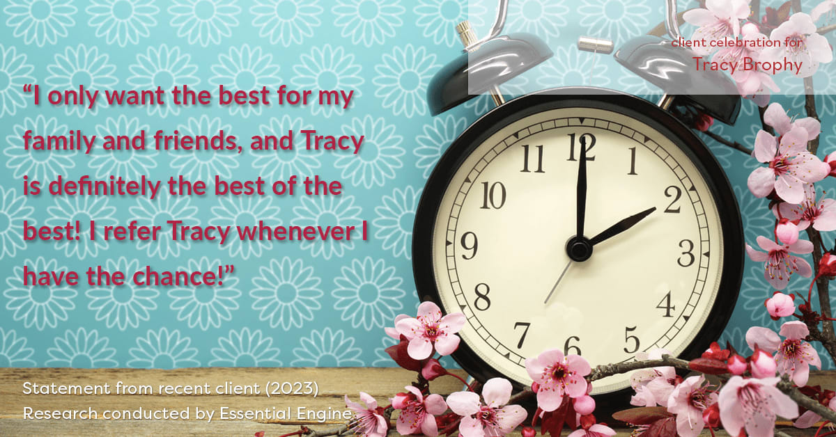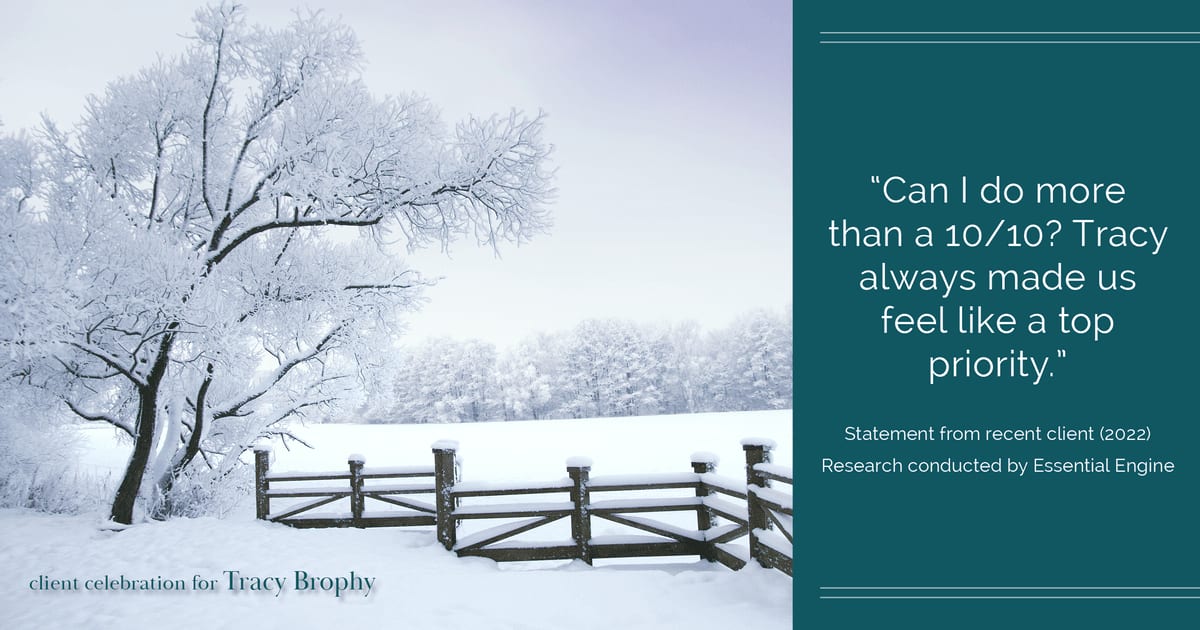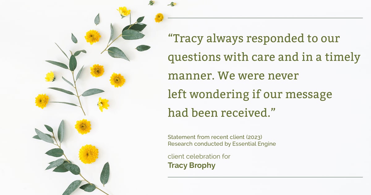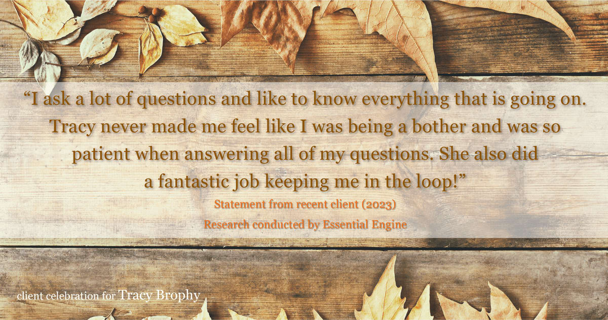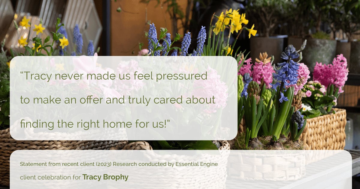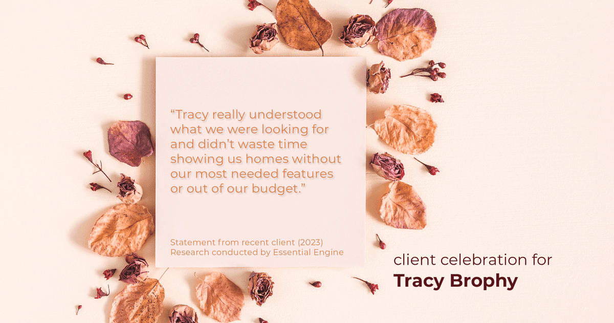 I was referred to Tracy by a co-worker and it was absolutely the best recommendation I've ever gotten. Both my husband and I have worked with multiple real estate agents and Tracy has them all beat without any doubt. Tracy was available to us whenever we needed her. She made it easy for us to look at houses by being available in the evenings and on weekends. This doesn't seem like too much of a stretch for a real estate agent, but we were toting around a toddler when we were looking so it wasn't always easy when we needed to schedule around nap times and not to mention getting him in and out of the car at each house. This didn't faze her one bit, and did I mention my son loves her. Along with putting up with us looking at probably 30+ houses all the way from Milwaukie to Beaverton, she managed to sell our house in record time for what we felt was a very fair price and more than I actually expected to get in this market. If you need a real estate agent and want someone who is fun, knowledgeable, and flexible Tracy is your agent hands down. She knows about the entire Portland metro market and didn't hesitate to tell us what she thought of the properties we were looking at, good or bad, which we truly appreciated. We ended up buying a bank-owned home and Tracy was the perfect agent to have in this situation because she was well-informed of what documents were needed for this type of transaction. She kept us informed and stayed in constant communication with the selling agent so we always knew where we stood. It took us 4 months to find our perfect home, but the wait was worth it. She found us a house we love in a neighborhood that we adore. We don't plan on moving soon, but if and when we do the first person I call will be Tracy Brophy.